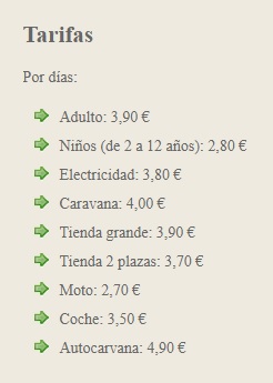 Ademas los perros están permitidos en este camping. Aquí te dejo la tabla de precios: