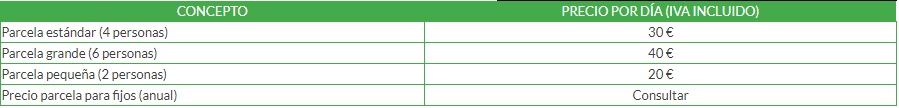 Os dejo la tabla con las tarifas para el 2019, tienen incluidos el elemento de acampada, coche y toma eléctrica. Para más información consultar su pagina web : www.campingpedrobernardo.com también puedes contactar con ellos a través de su e.mail: info@campingpedrobernardo.com o por teléfono: 920 387 182