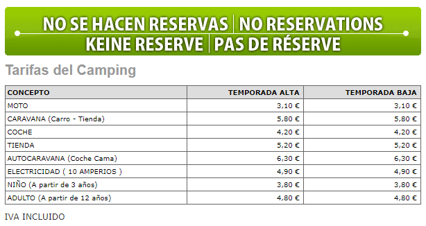 El camping cuenta con 155 parcelas de entre 70 y 100 m2 todas con toma eléctrica, mucha sombra natural aunque hay algunas parcelas que también tienen sombrajes. Una de las cosas que mas nos gustó era que todas las parcelas tenían el suelo de césped. Tienen tomas de agua repartidas por todo el camping.