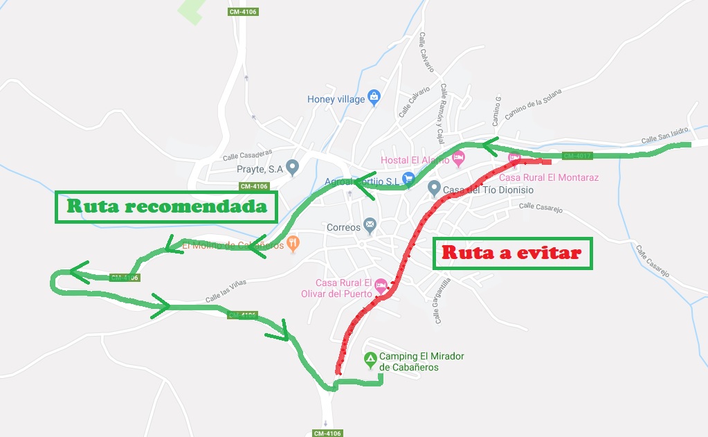 Es muy importante no hacer caso al navegador, que intentará meternos por el centro de Horcajo llevándonos por una calle que tiene demasiado desnivel para ir con nuestra caravana. Es mejor seguir por la calle principal y llegar a través de una circunvalación que te deja en la puerta del camping.
