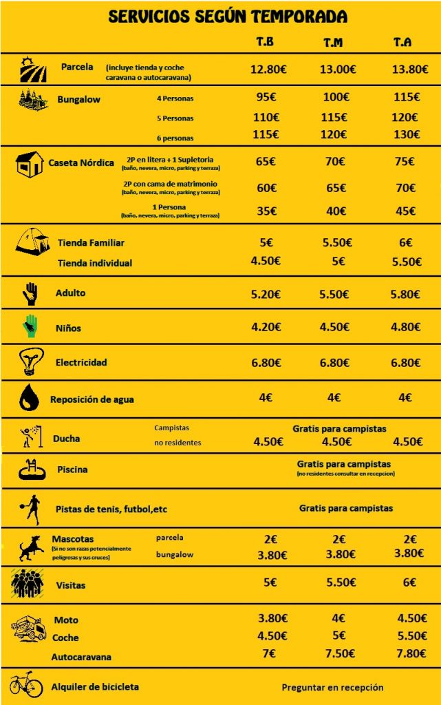 Este camping tiene una gran piscina, aunque no pudimos disfrutar de ella por que fuimos en Noviembre. Creo que después de una ruta de senderismo en verano lo mejor es darse un bañito en esta apetecible piscina. El camping también tiene pistas deportivas, bar-restaurante, un gran parque infantil, y un salón social con chimenea, ideal para que los enanos se entretengan los días de frío o lluvia con los juegos de mesa o dibujando. Un detalle que me ha gustado mucho es que en la parte final del camping tienen una zona de barbacoas con un merendero cubierto, lo que hubiera dado yo por tener ésto en mi época de tienda de campaña. Además en este camping están permitidas nuestras mascotas excepto razas PPP, tanto en parcelas como en bungalows.